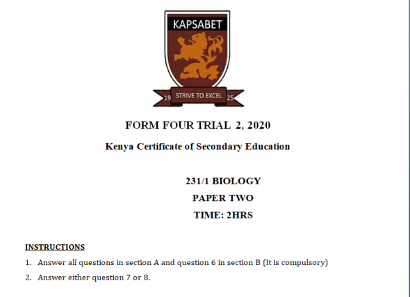 The Kapsabet Mock Biology Paper 2 2021 paper is ideal for form four candidates who are about to sit their National exams for revision. Teachers can also use the paper for revision purposes.